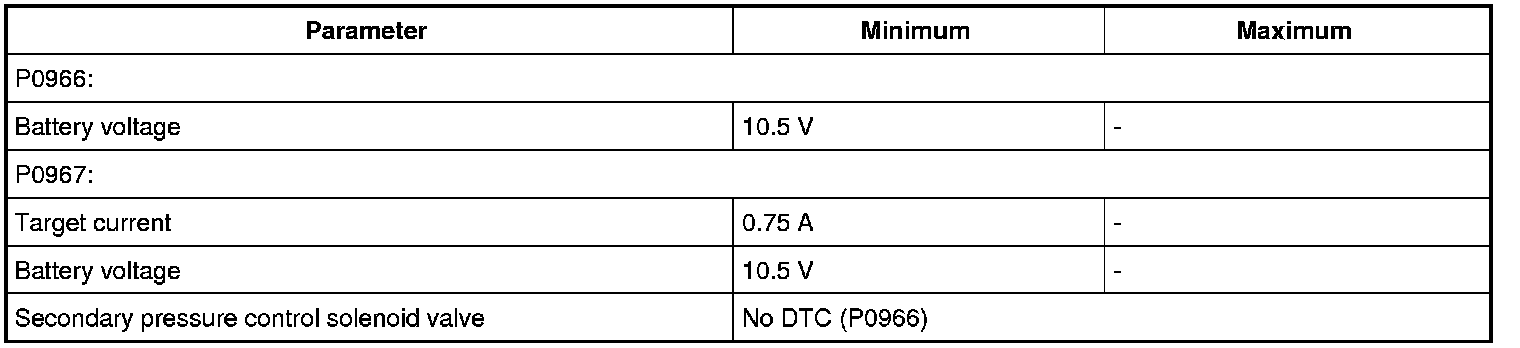 - Secondary pressure control solenoid valve (P0966, P0967)