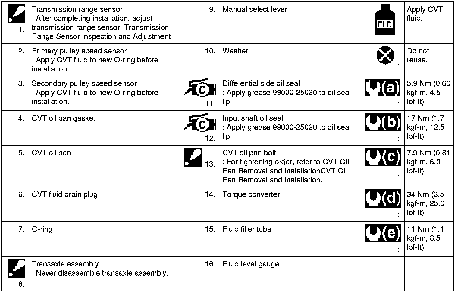 CVT Assembly Components
