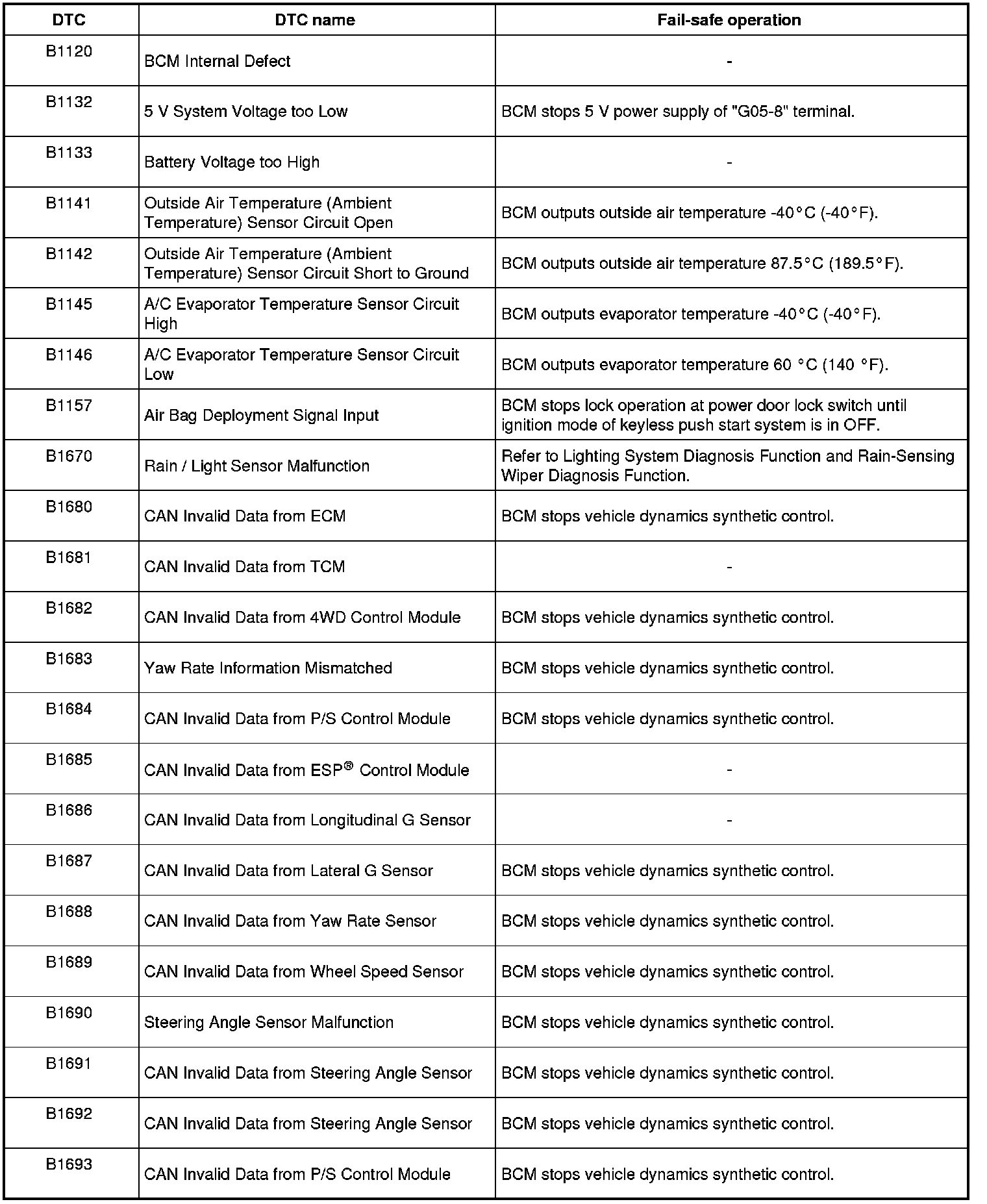 performs fail-safe operation as long as malfunction continues to exist. That operation is canceled when BCM recovers normal condition.