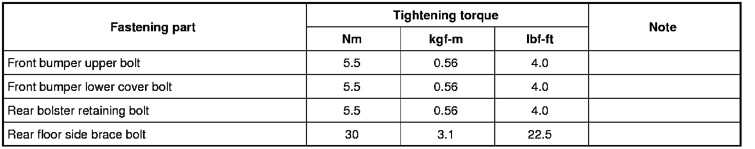 For the tightening torques of fasteners not specified in this section, refer to Fastener Information Fastener Information.