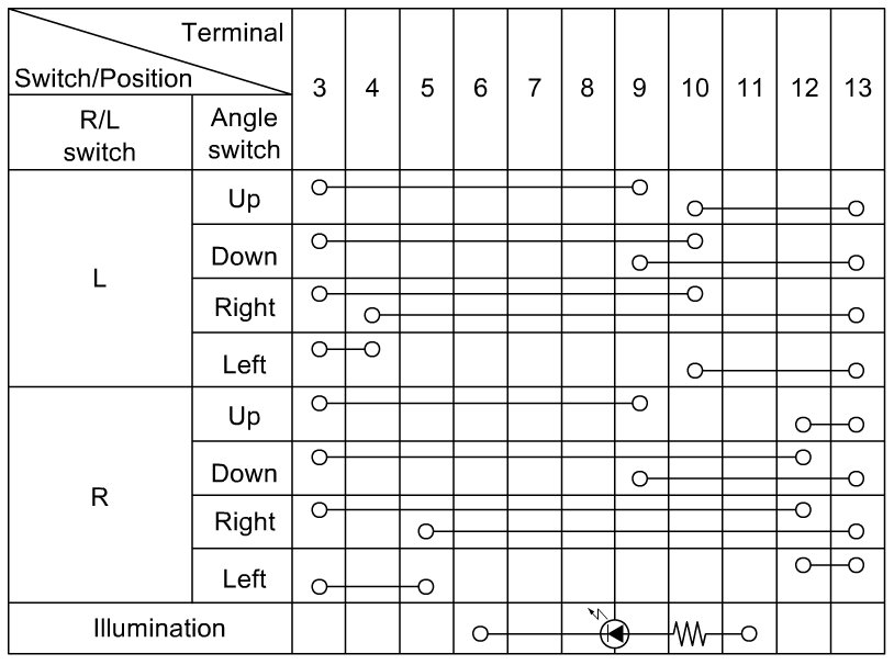 2) Check continuity between terminals at each switch position.
