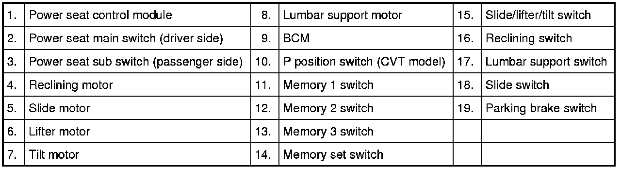 Power Seat Control System Component Location
