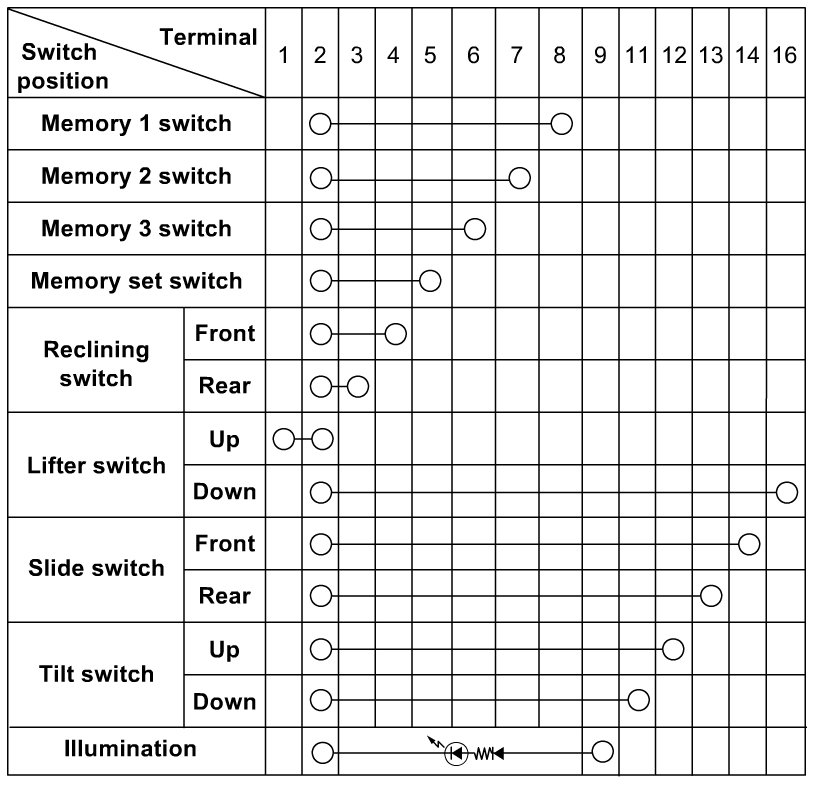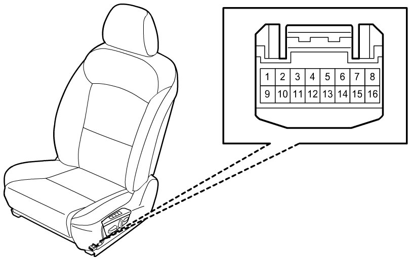 1) Disconnect power seat main switch connector from front seat control module (driver seat).