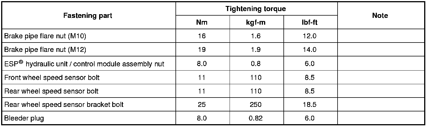 Tightening Torque Specifications