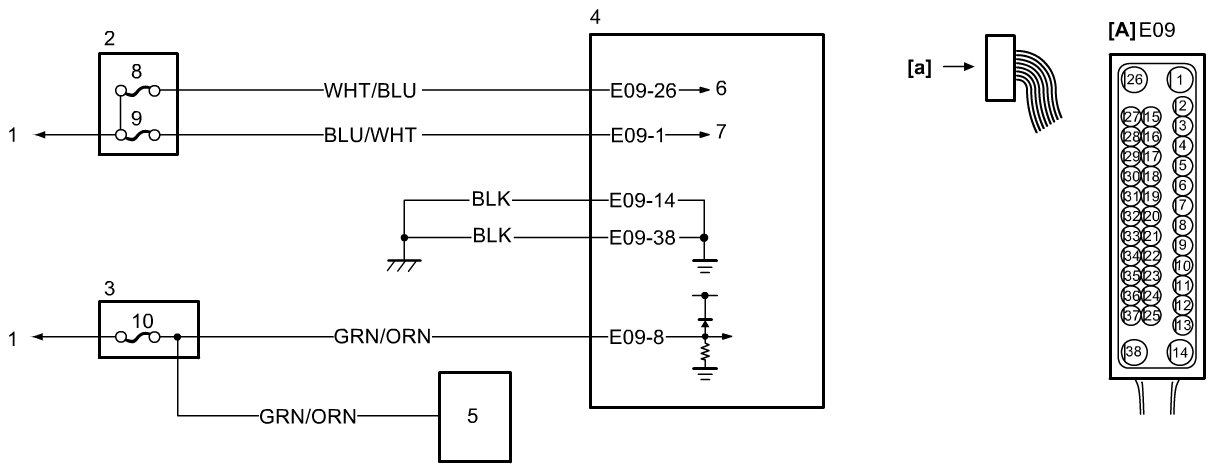 Check for proper connection to "E09-1", "E09-8", "E09-14", "E09-26" and "E09-38" terminals.