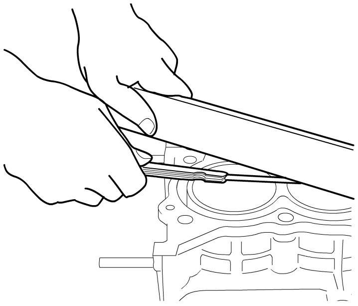 Use straightedge and feeler gauge to check gasket surface for distortion and repair it, if flatness exceeds the limit.