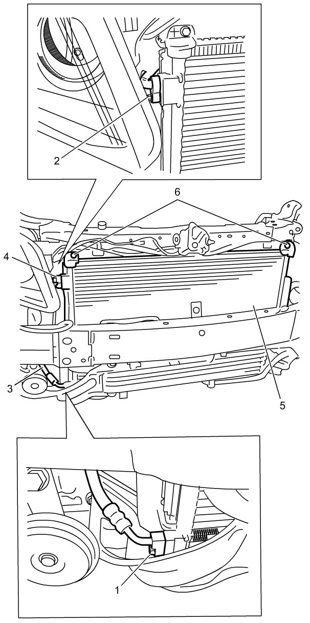 5) Remove condenser assembly mounting bolts (6).
