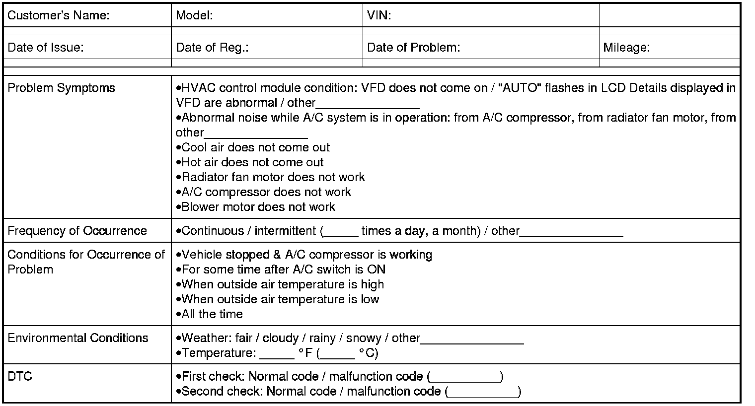 Check the parts or system suspected as a possible cause. HVAC System Symptom Diagnosis