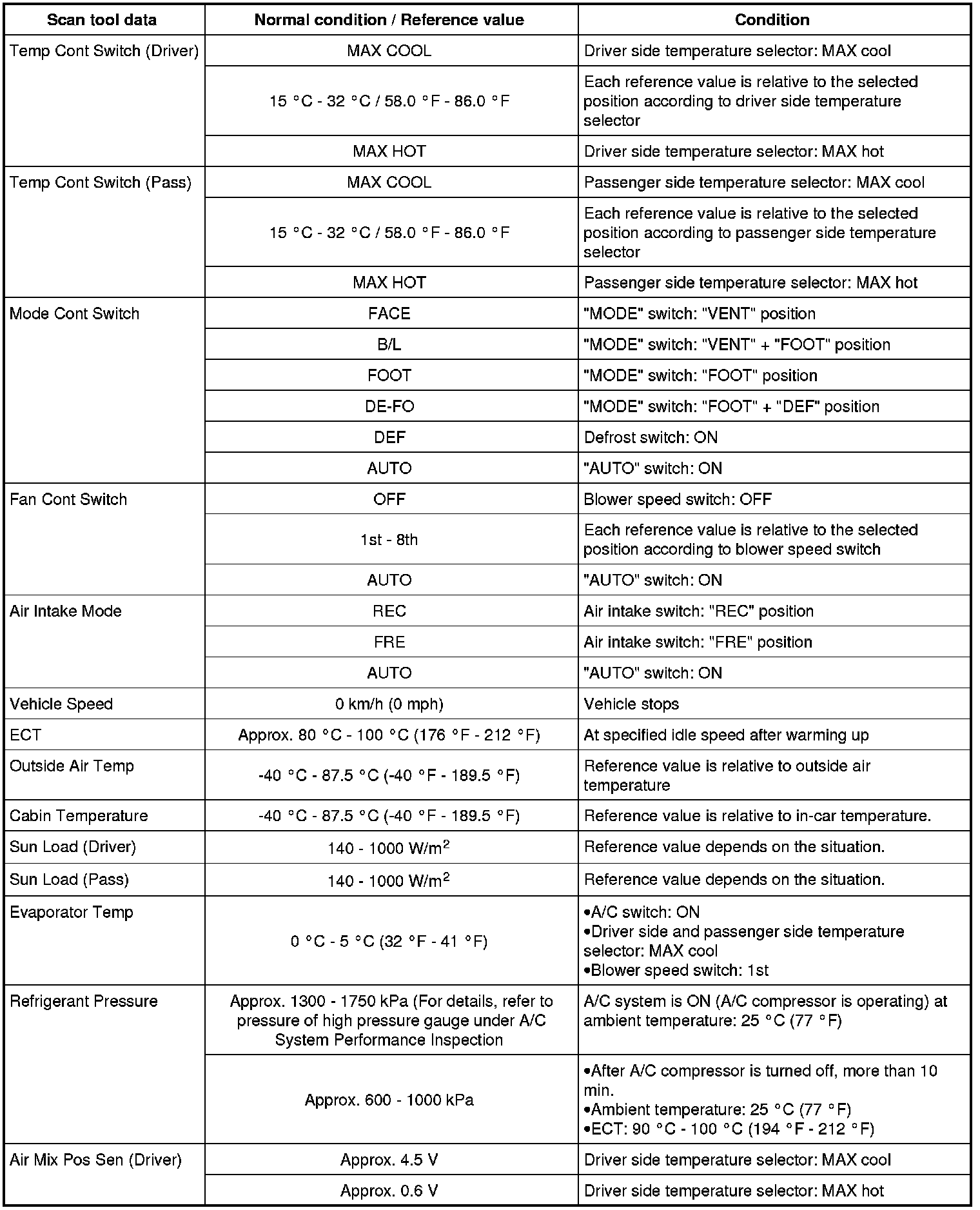 AIR MIX POS SEN (DRIVER) (Driver side temperature control actuator position sensor, V)
