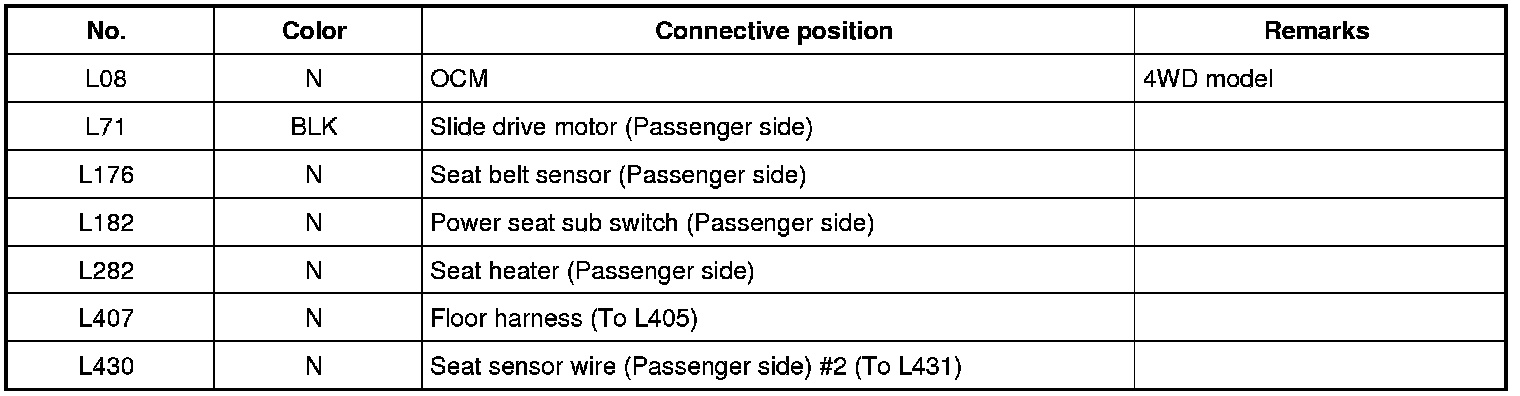 L: Seat Sensor Wire / M: Trunk Harness, Rear Bumper Wire