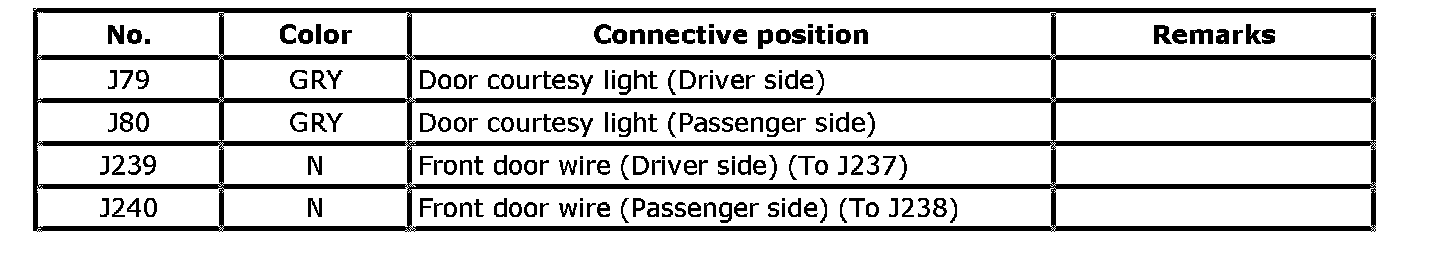 Door, RoofJ: Front and Rear Door Wire, Door Courtesy Light Wire / K: Roof Wire, Roof Audio Antenna Wire