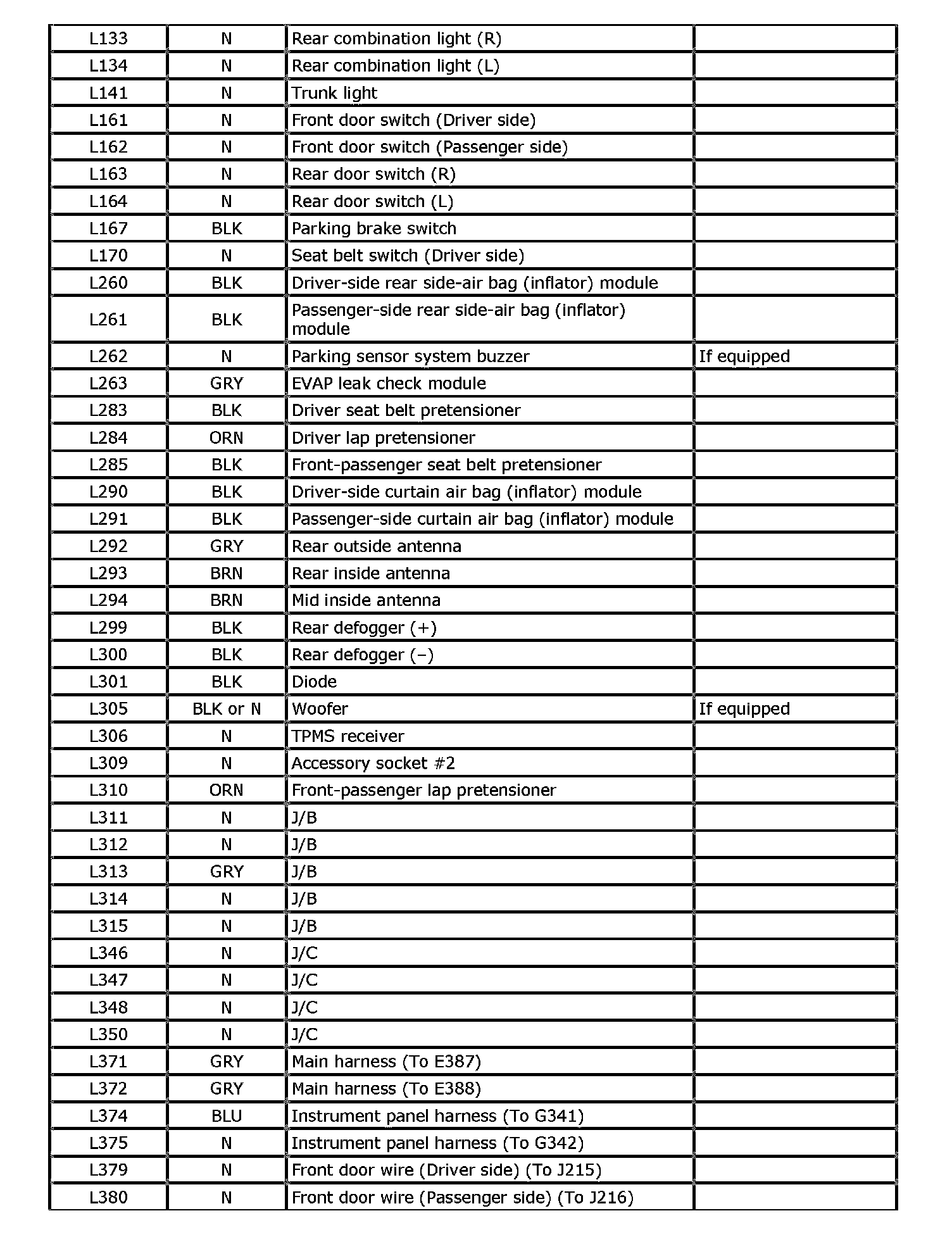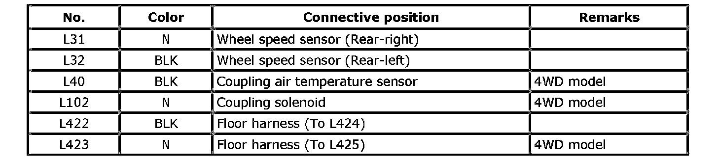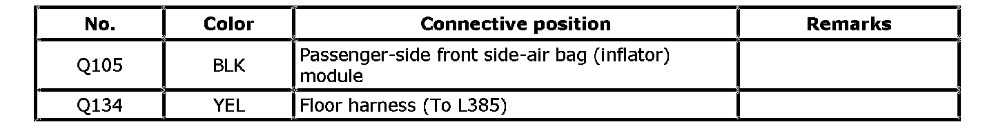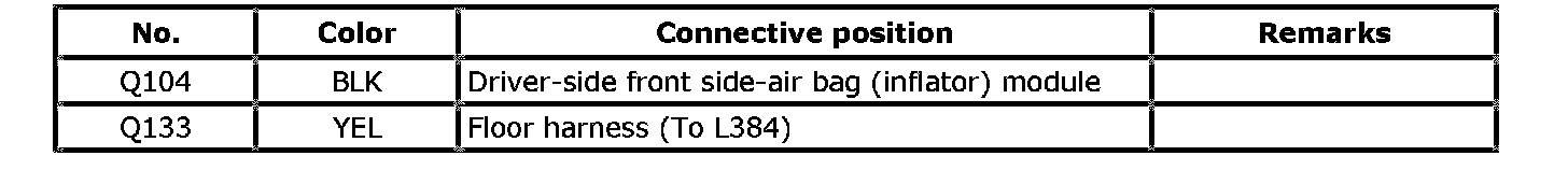 L: Floor Harness, Rear Sub Frame Harness / Q: Side Air Bag Harness / R: Fuel Pump Wire