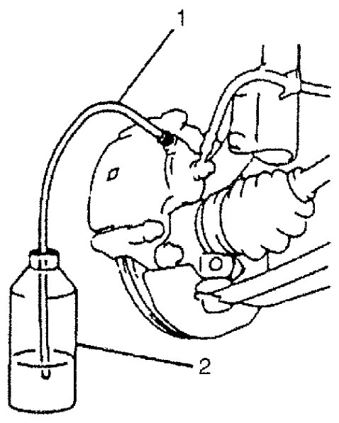 1) Using a dropper or the like, extract some brake fluid from reservoir of brake master cylinder.