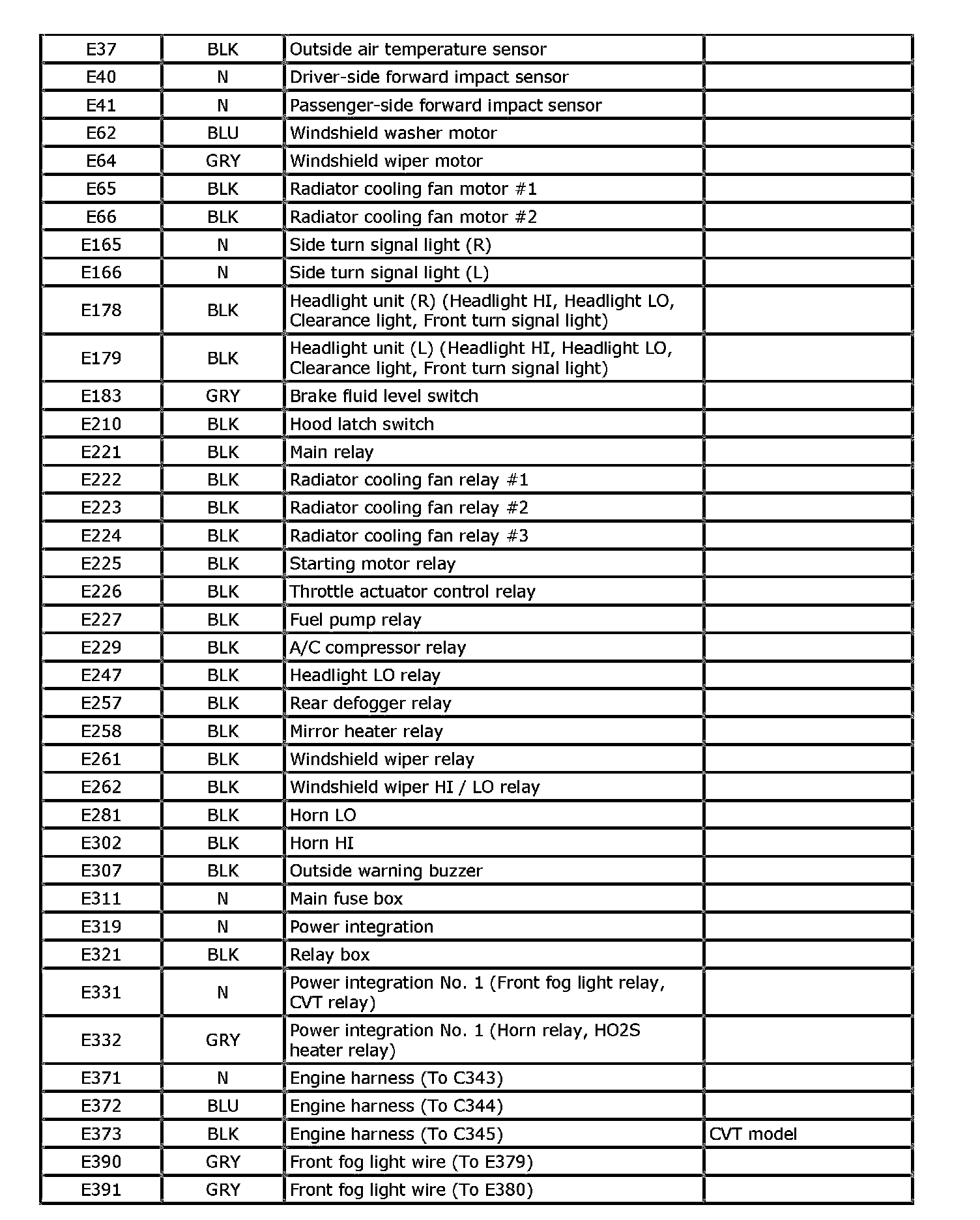 E: Main Harness, Fog Light Wire
