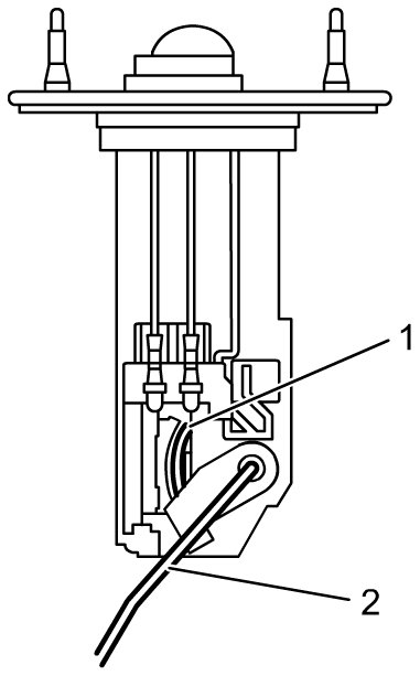 To prevent failure of the fuel level sensor, be careful not to touch the resister plate (1) or deforming the arm (2) when performing the service operations described below.