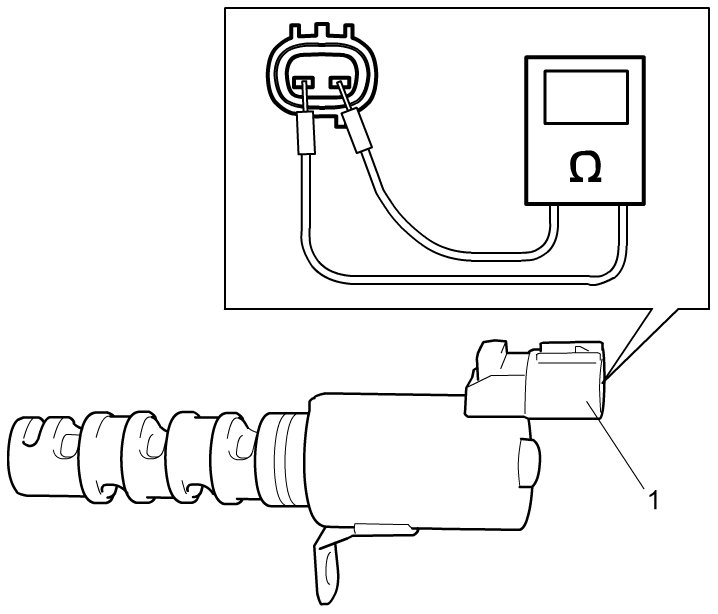 - Check resistance between terminals of oil control valve connector (1).