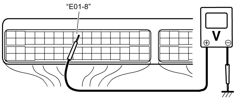 iv) Check EVAP leak check pressure sensor output voltage (barometric pressure signal voltage) between "E01-8" terminal and negative terminal until it becomes lower than pressure sensor output voltage of "Initial (barometric) pressure check" by approximately 0.1 V.