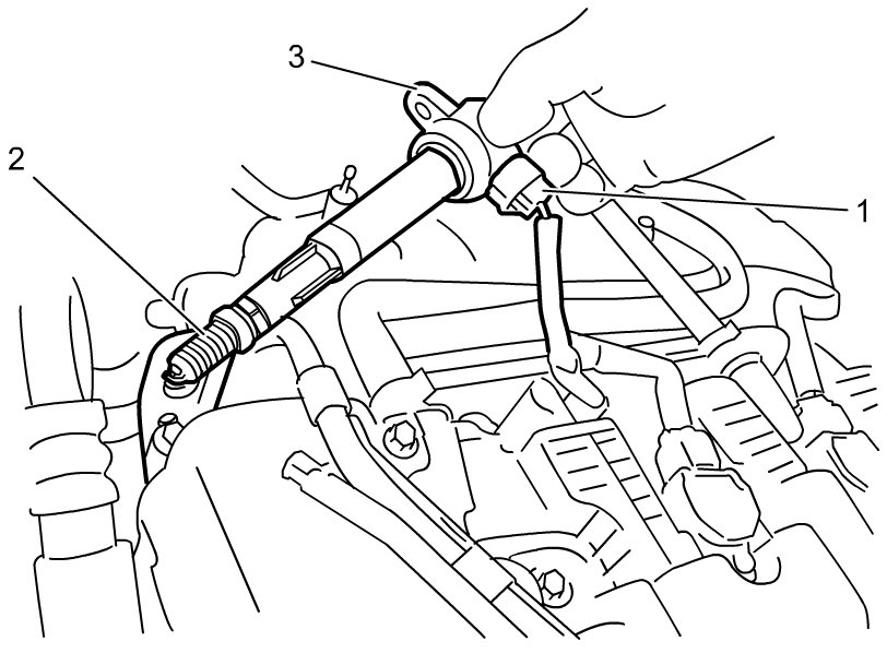 4) Connect ignition coil connector (1) to ignition coil assembly (3).