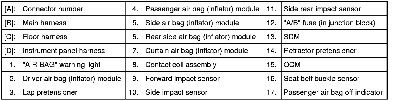 Air Bag System Component, Wiring and Connector Location