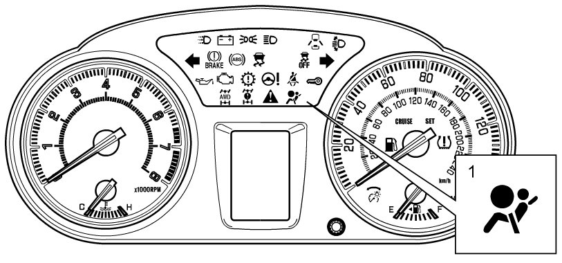 - SDM always monitors system when ignition mode of keyless push start system is in "ON". If an error is detected, it notifies driver of error by turning on air bag warning light (1) and detected error is stored in SDM memory as DTC.