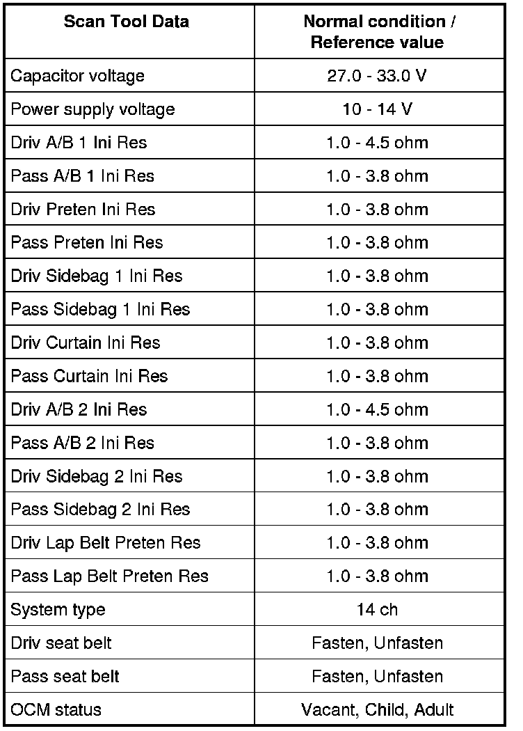 Pass Sidebag 2 Ini Res (Passenger rear side air bag initiator resistance) (ohm)