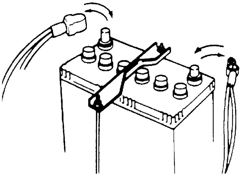 - When removing the battery, be sure to disconnect the negative (-) cable first and then the (+) positive cable. When reconnecting the battery, connect the positive (+) cable first and then the negative (-) cable. Reinstall the terminal cover.