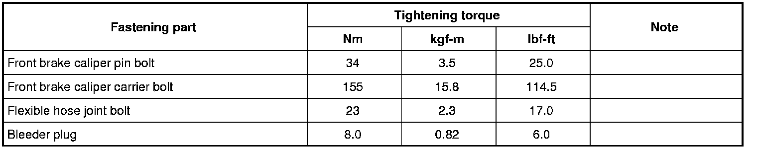 For the tightening torques of fasteners not specified in this section, refer to Fastener Information Fastener Information.