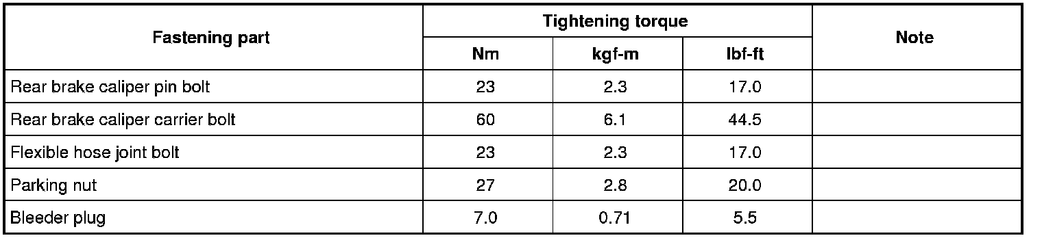 Tightening Torque Specifications