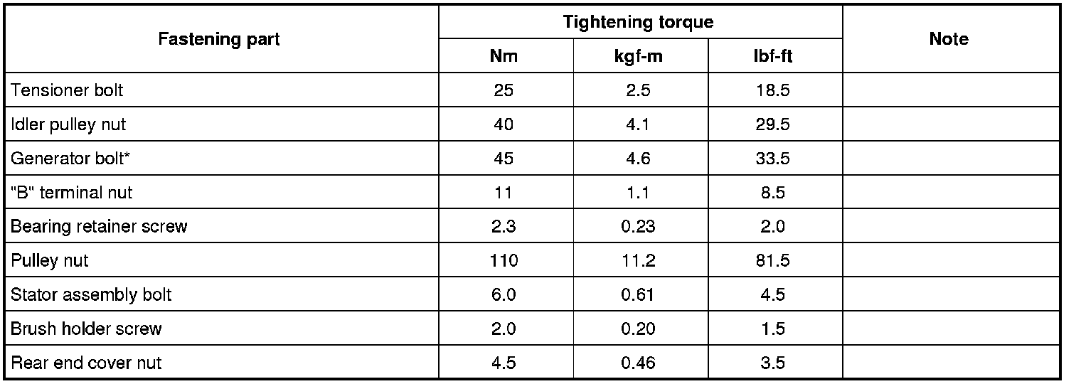 For the tightening torques of fasteners not specified in this section, refer to Fastener Information Fastener Information.