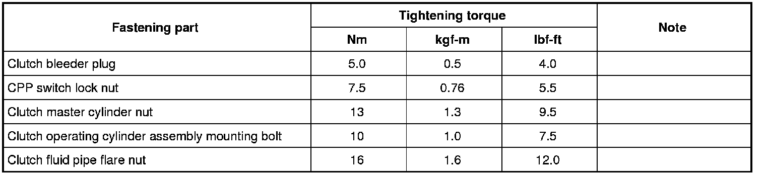 For the tightening torques of fasteners not specified in this section, refer to Fastener Information Fastener Information.