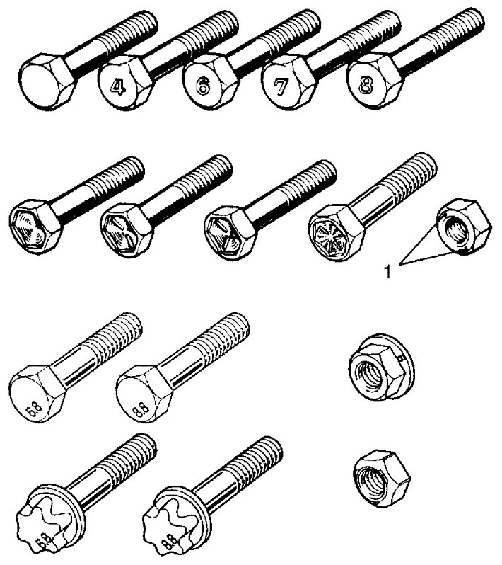Most commonly used strength classes of metric fasteners are 4T, 6.8, 7T and 8.8. Strength class is indicated by a number or radial line(s) embossed on the head of each bolt. Some metric nuts have a punched number, 6 or 8 on their end surfaces. Figure shows different strength markings.