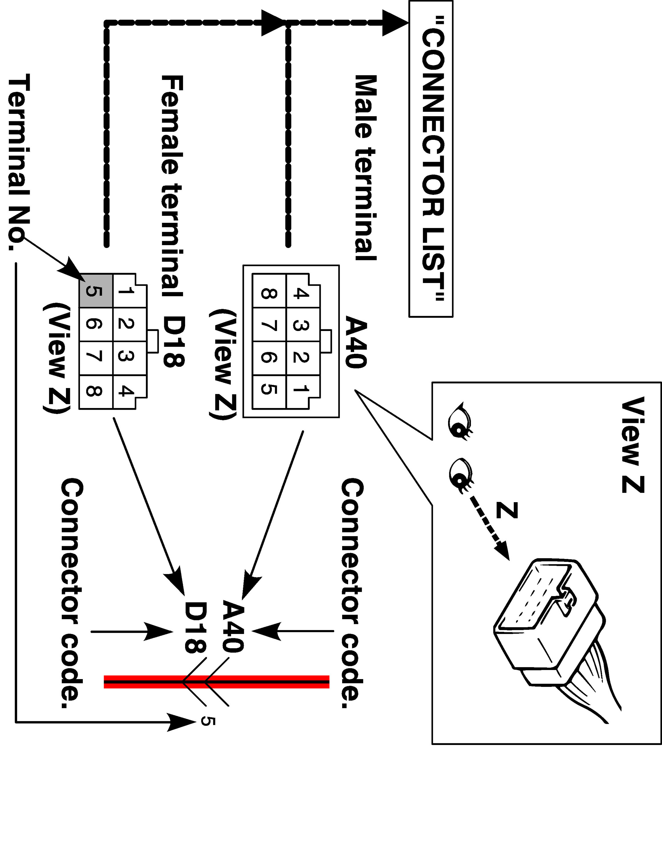 ^ The connector shape and terminal layout shown in this manual are those when viewed from "Z" in the illustration.