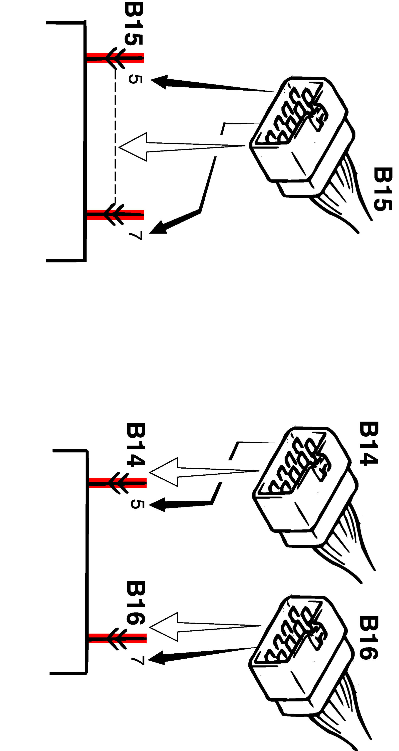 3) Terminals in one connector (Broken line) (B15)/Terminals in different connectors (B14, B16)