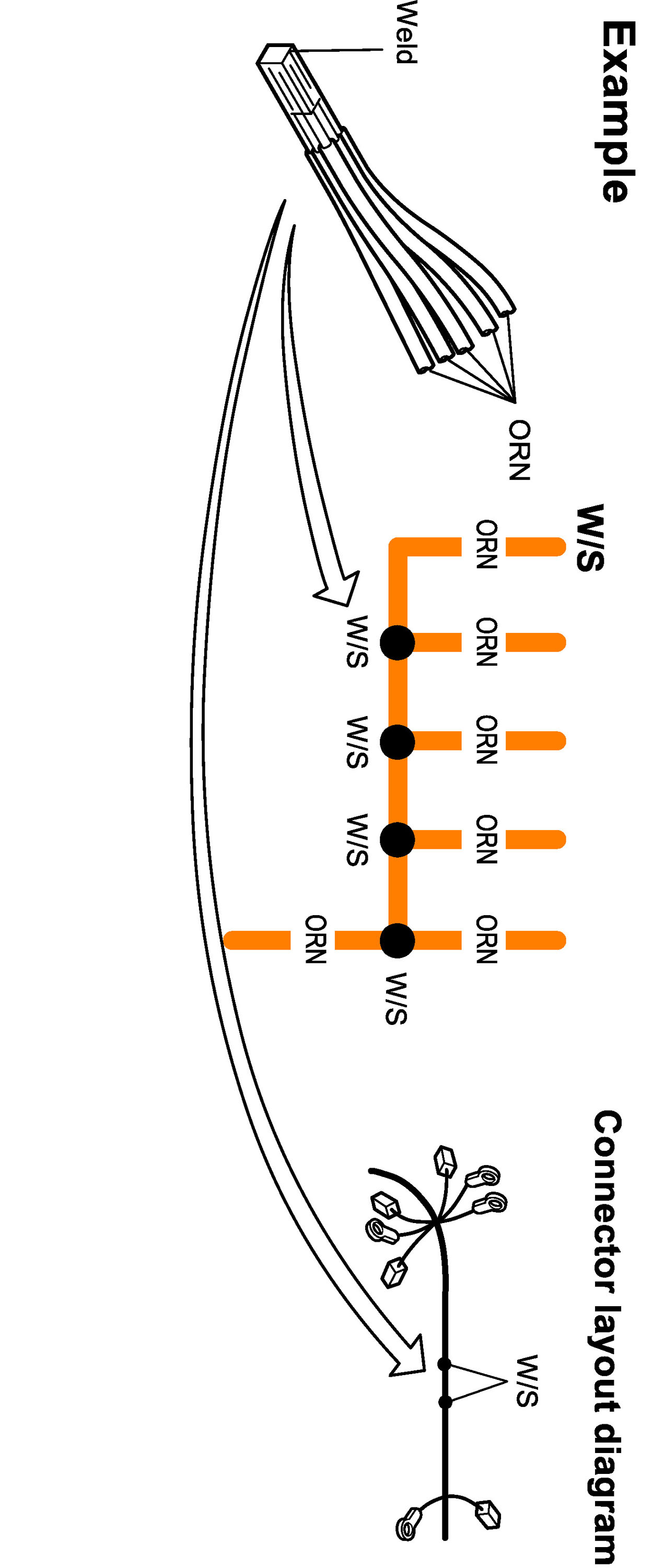 ^ Several different wires with the same wire color are joined by welding at a W/S.