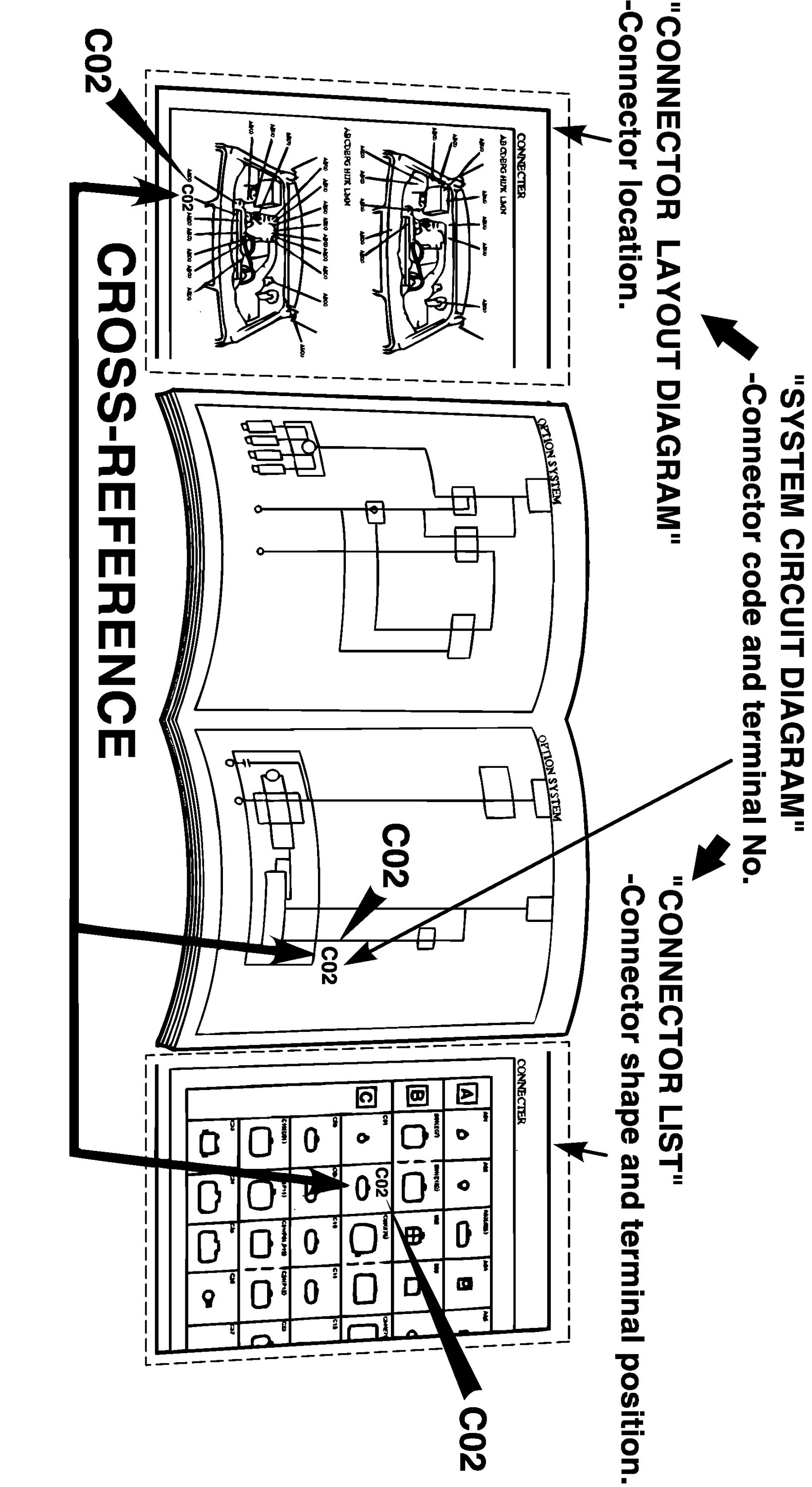 How to Read Connector Codes and Terminal Nos.1) Connector codes and Terminal No./Terminal layout