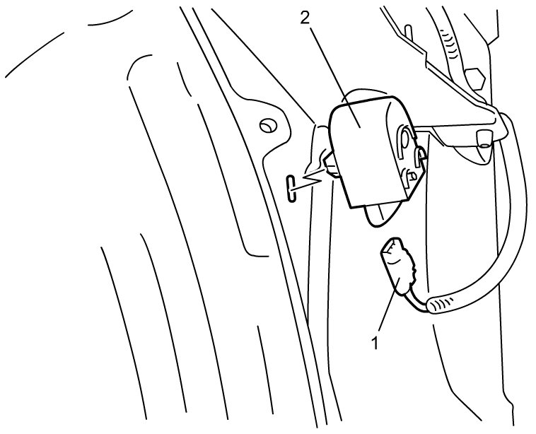 3) Disconnect connector (1), and then remove outside warning buzzer (2).