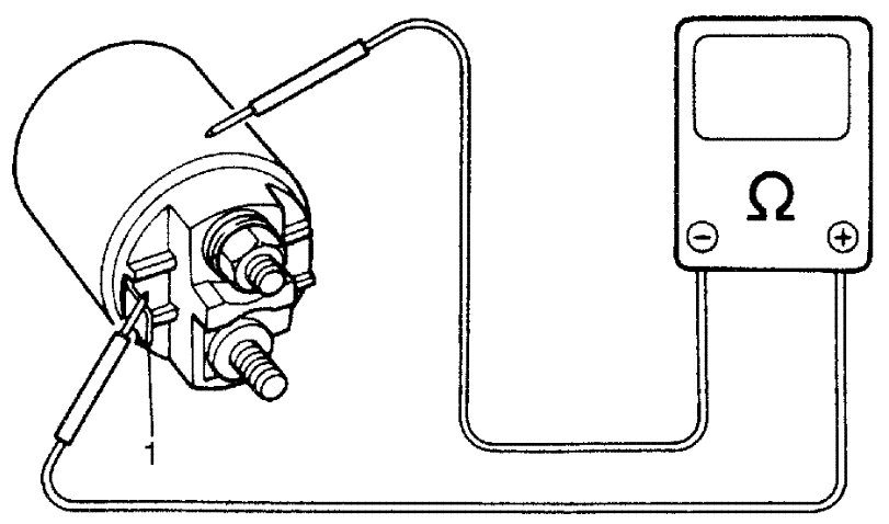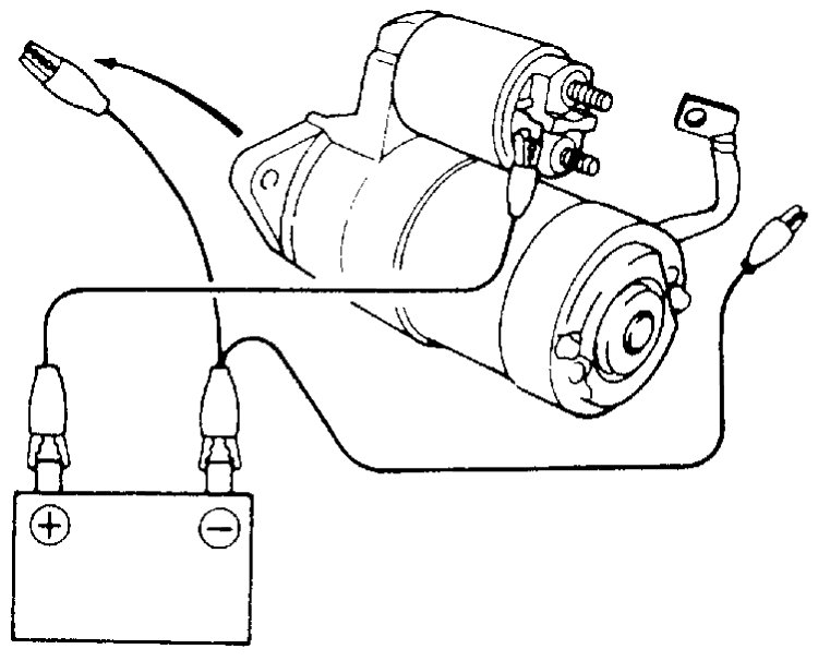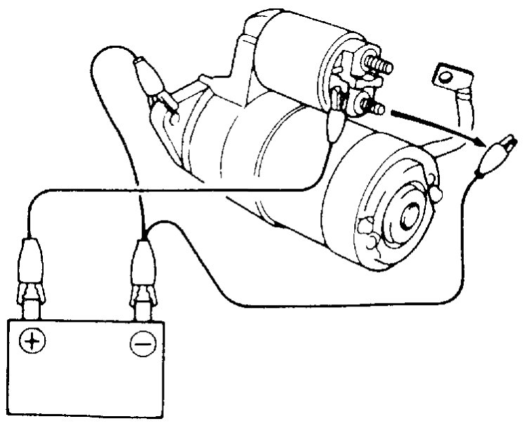 a) From the state of step 2) with plunger and pinion in "out" position, disconnect negative (-) lead from starting motor body.