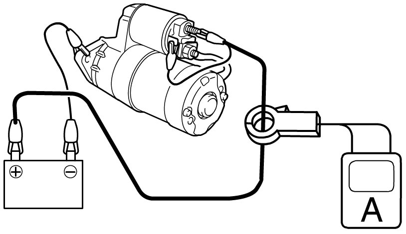 a) Connect battery and ammeter to starting motor as shown in figure.