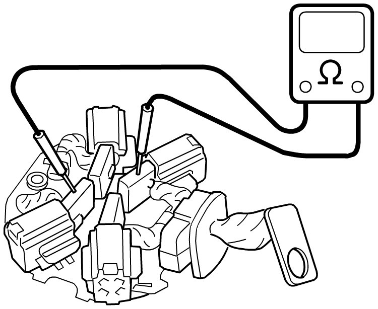 - Check for continuity between insulated brush (positive (+) side) and grounded brush (negative (-) side).