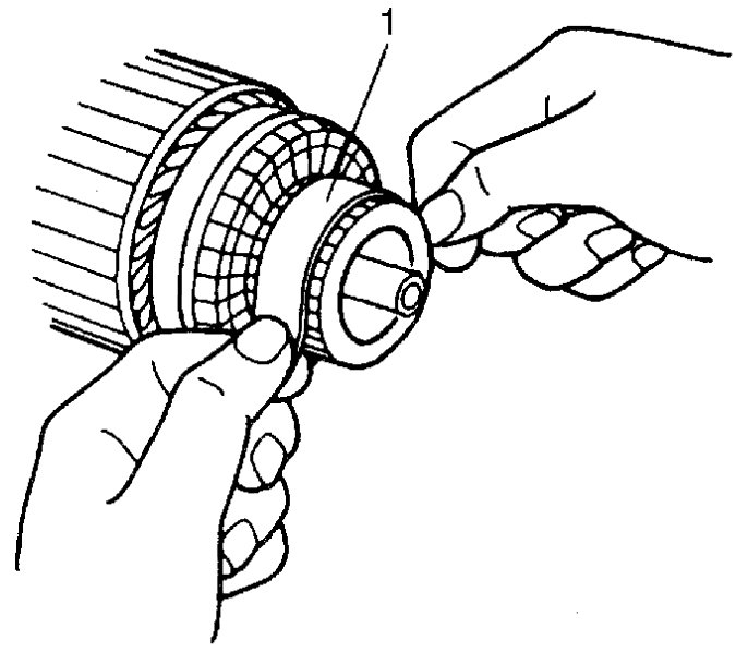 - Check that clutch locks when turned in normal rotation direction and rotates freely when turned in opposite direction. Replace pinion and overrunning clutch if necessary.