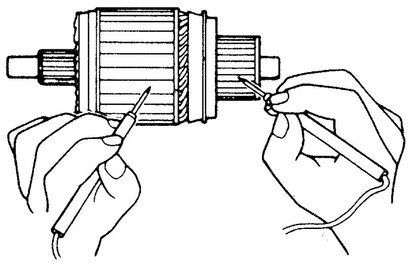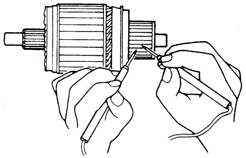 - Check for continuity between segments. If there is no continuity at any test point, replace armature