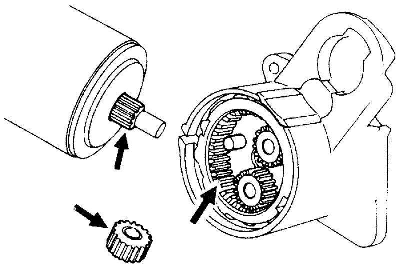 b) Check that starting motor rotates smoothly and steadily with pinion moving out.