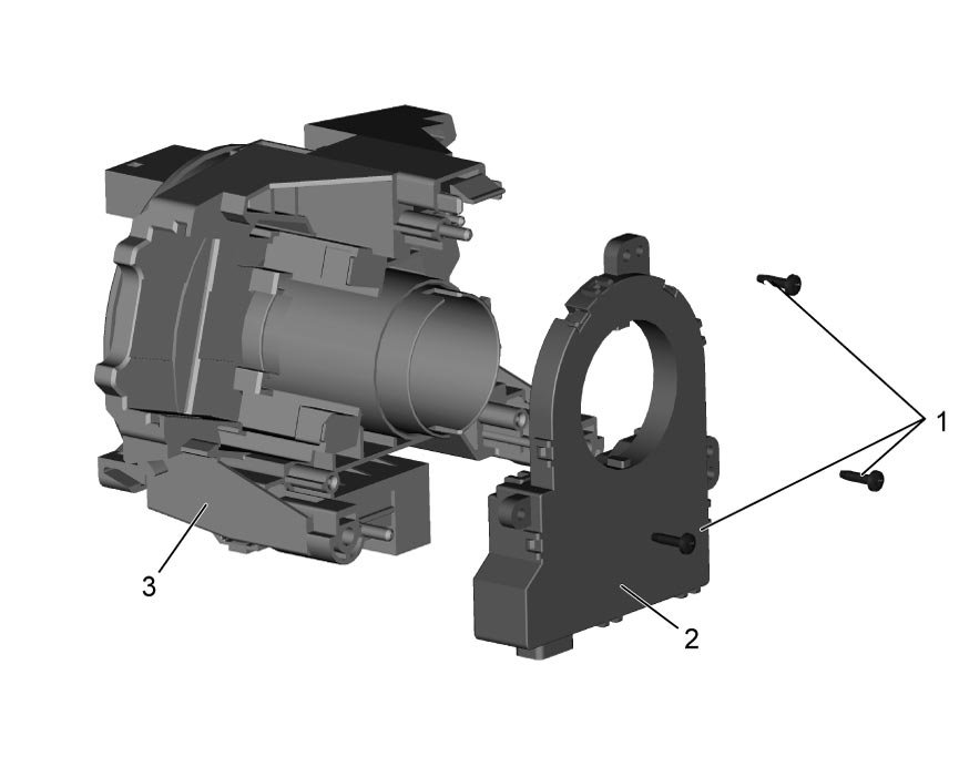 6) Remove screws (1) and steering angle sensor (2) from contact coil cable assembly bracket (3).
