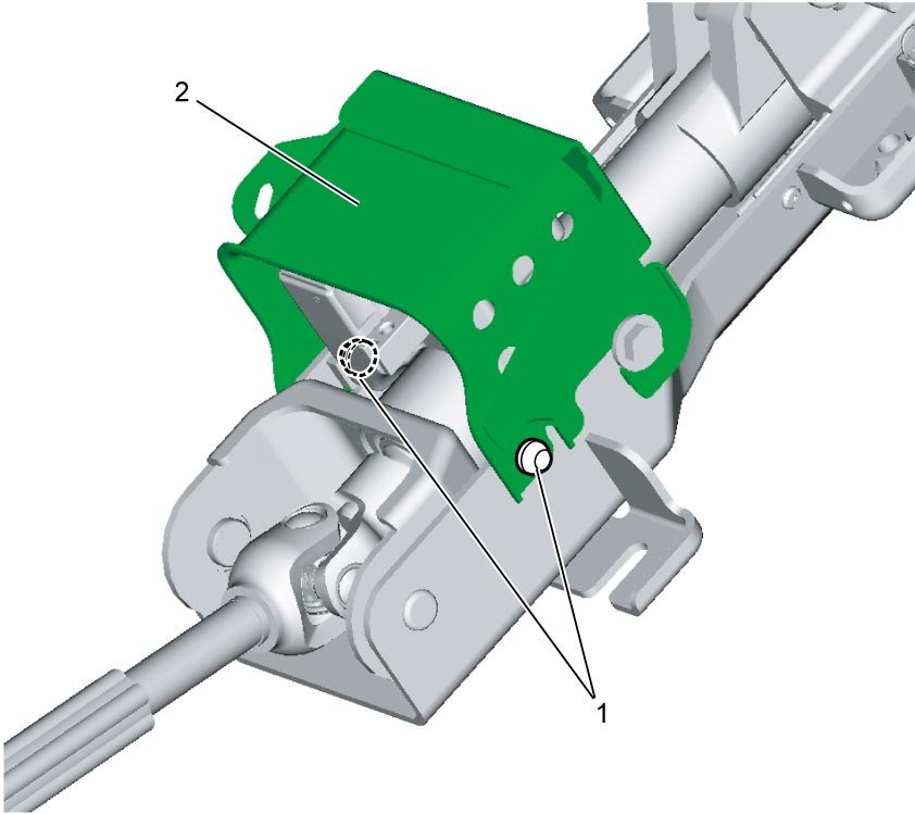5) Install steering lock cover (1) and tighten new lock cover bolts (shear-off bolt) (2) until bolt-head is wrenched off.