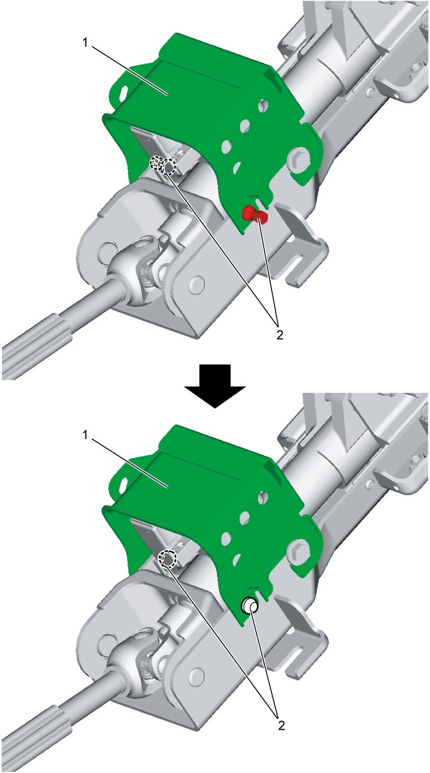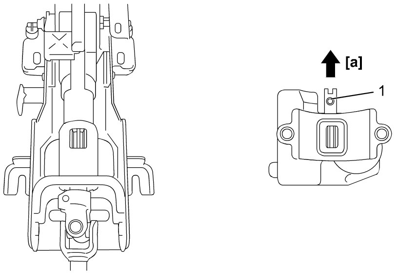 1) Install auto steering lock unit with column cover screw mount hole (1) facing vehicle forward.