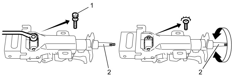 4) Push engine switch to change ignition mode of keyless push start system to "ACC" or "ON" and check that steering shaft (2) rotates smoothly. Then change ignition mode to "OFF" and check that steering shaft (2) is locked when it is turned a little.
