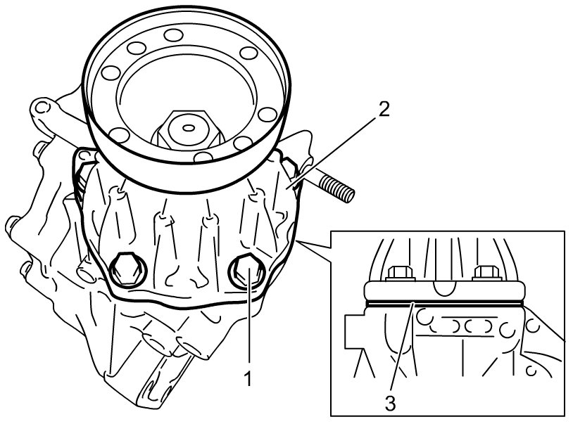 1) Remove transfer output retainer bolts (1) and transfer output retainer assembly (2) and shim (3).