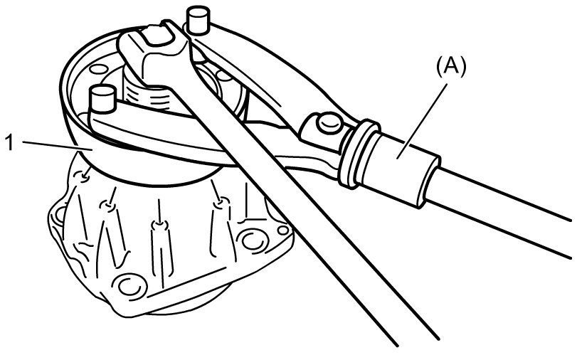 3) Loosen transfer output flange nut while locking flange (1) with special tool.