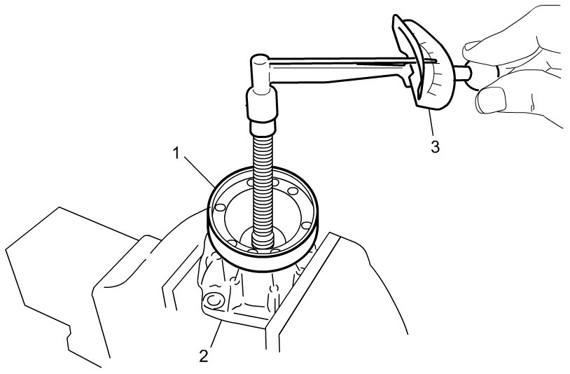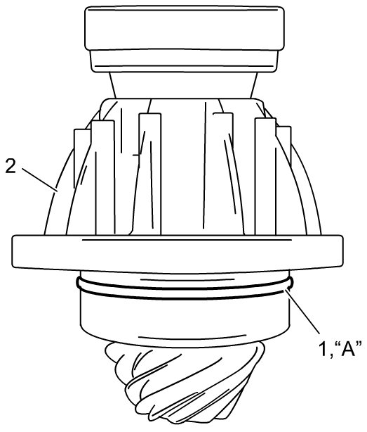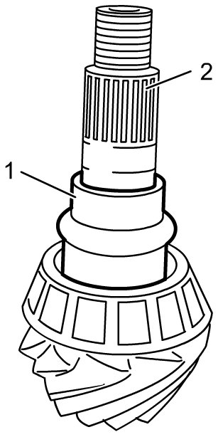 6) Remove spacer (1) from bevel pinion (2).