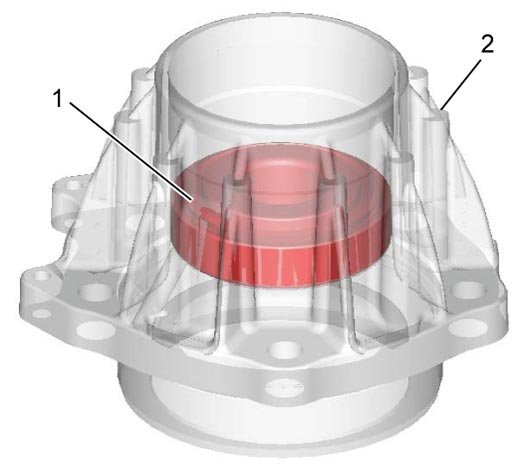 11) Apply grease to new O-ring (1), and install it to transfer output retainer (2).
